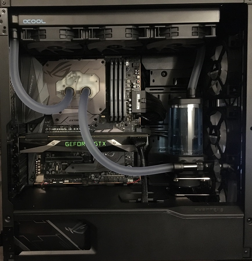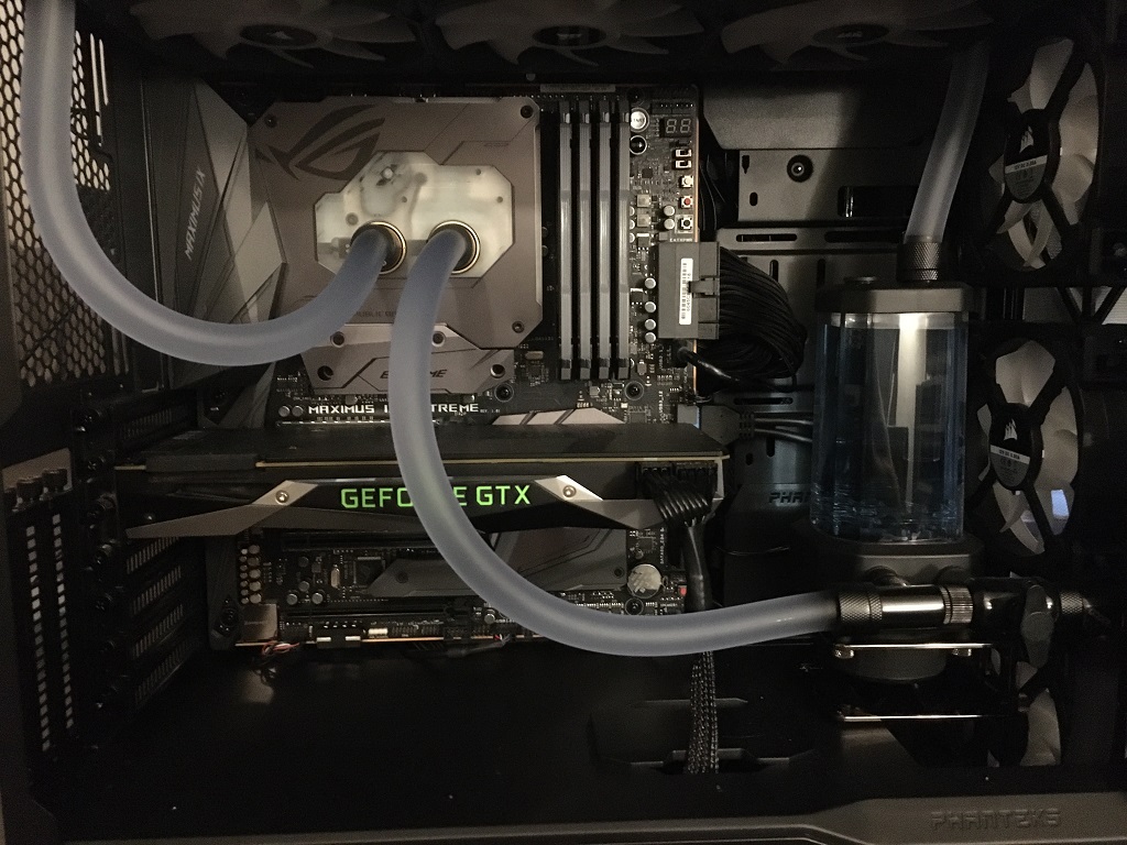 After running some benchmark tests, the bottleneck appears to be the stock GPU cooler. I'm going to test the system out for a while, then probably add another Alphacool 360 radiator to the front, and swap the GPU cooler to a Bitspower water cooler, and add acrylic rigid tubing.