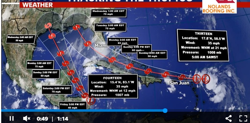 PALM BEACH, Fla. — The National Hurricane Center is forecasting for two tropical systems to reach hurricane strength, with both sharing the Gulf of Mexico at the same time.