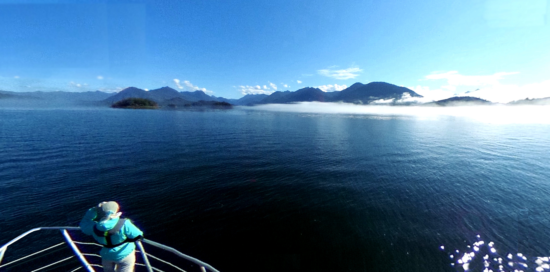 ' We motored toward Meares Island, the humps on the horizon, in anticipation of meeting our kin, in the woods, our protectors. ' [ /maps/place/Lone+cone/49.2094758, -125.9118417 ] . Check out the view from the top of Lone Cone Mtn, on a sunny day, see to the horizon, far out on the Pacific, the Cascadia Fault, where the Tsunami will appear.