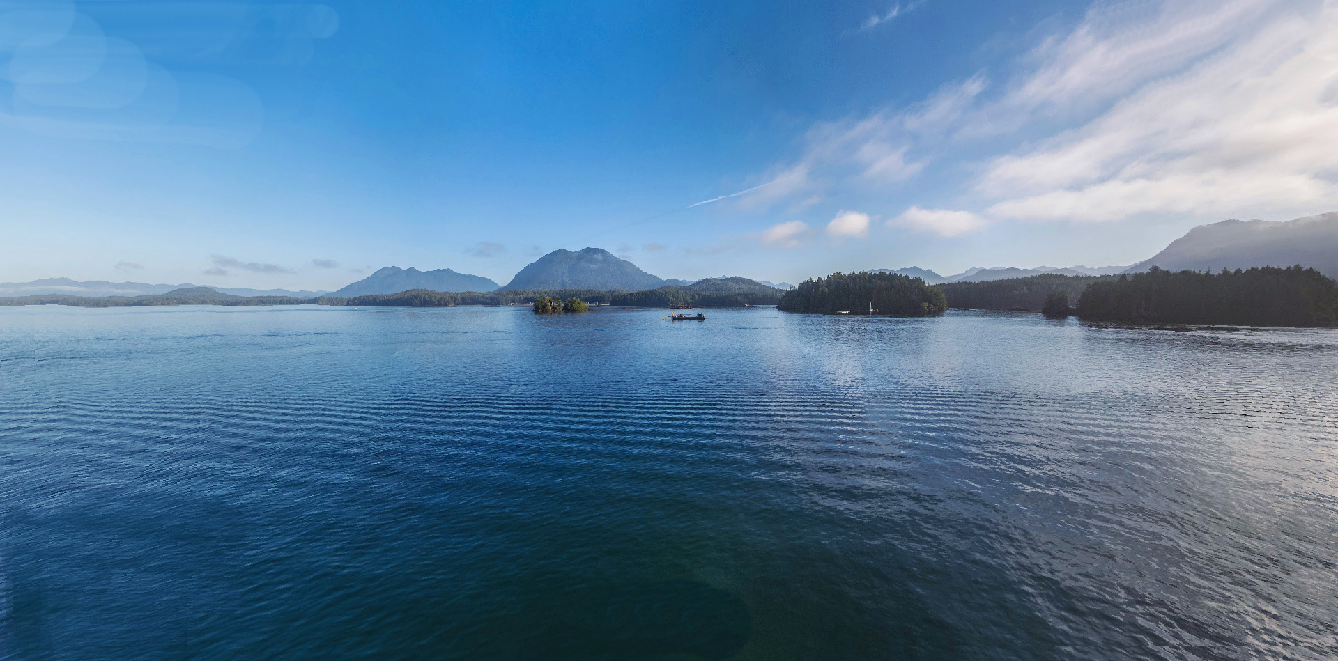 The view due north from the dock in Tofino, Lone Cone Mtn in the center distance. Simply move to Tofino, a wonderful experience in a remote Pacific Coastal community, the great outdoors, Sasquatch on the mountains, great seafood. Take a ferry to Vancouver Island The truth is, it's usually fogged, like, 99% of the time, so, when it clears, they take photos, these are them, nice, isn't it ?