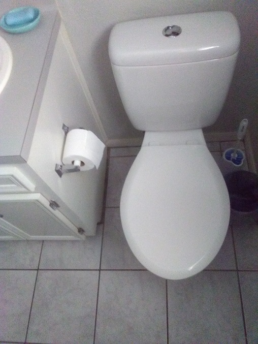 Guest bathroom toilet paper holder. Who thehell puts a tp dispenser behind ya?