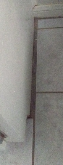 Look now, at how they did the tile below the tp roll holder.. 1/2" space between the tle and the cabinet.