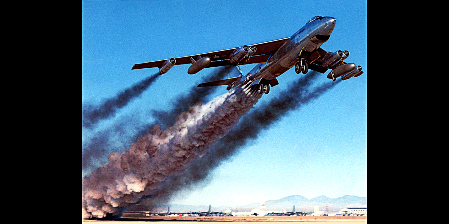 Yeah, that's the story I liked the most, a Mark Twain retelling. Two things, first, the Impala was a station wagon, and second, the two (2) JATOs burned for 25 seconds. See, the rockets scorched the asphalt of the highway, the tires all blew at 150mph, with 22 seconds of burn time remaining. The Beige Metallic Impala exceeded 350mph when the windshield blew out, running on the steel rims, making sparks, leaving the road before the gentle curve to the left, gaining altitude, the twin rockets still burning, the driver, err, pilot, gripping the steering wheel white knuckled, The roof of the wagon acting as a wing, stabilizing it's flight, the CoG all wrong, beginning to tumble longitudinally, faster and faster, impacting the butte nose first, at beyond 450mph. The FAA's NTSB discovered the casting numbers of the 283's engine block and rear axle, whereupon they turned the investigation over to the Arizona Highway Patrol. . B-47 Jato take-off at maximum gross weight, circa '57.