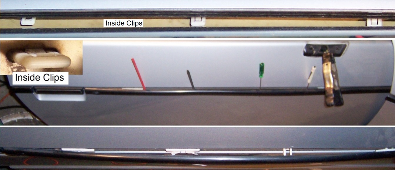 Molding StripI didn’t want to ‘pry’ on the outer finish, so I started inside of the door with a long heavy flat screwdriver by popping/breaking the visible four middle clips. With the inside middle clips loose, the molding was slightly ‘bowed’ away from the outer panel. Using thin tools; I carefully inserted the tools under the loose molding and then pulled the strip outward more.