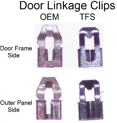 Special Note: I brought TFS Door Latch Rod Clips {#88197} and they didn’t have the ‘U’ channel. Thus, I didn’t try to force their clip onto the lock linkage groove.