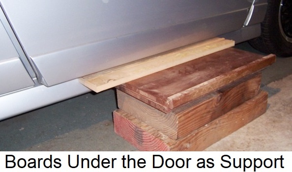 I put boards under the door as ‘support’ to hold the panel when it is time to lift the panel from the frame.