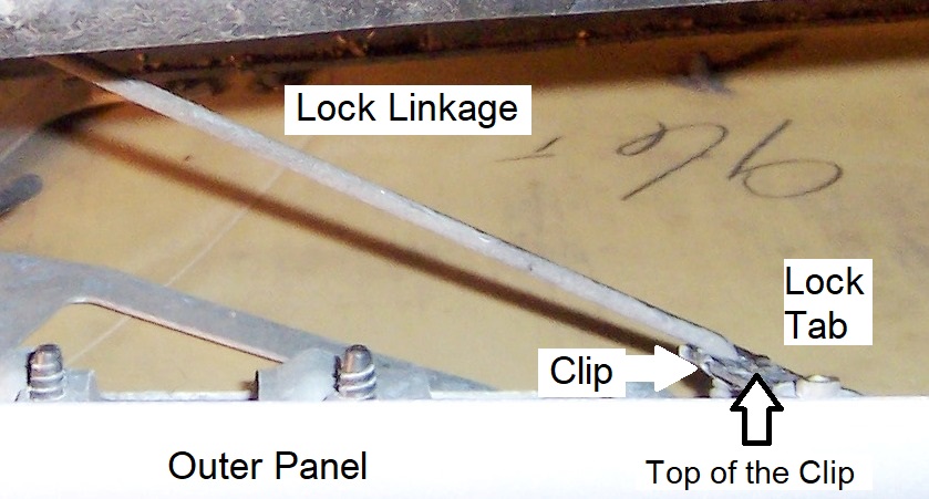 When the door and panel are ready; put the lock linkage clip onto the end of the rod; place the outer panel next to the lock linkage; install the lock linkage to the lock cylinder tab, and then the fun begins…